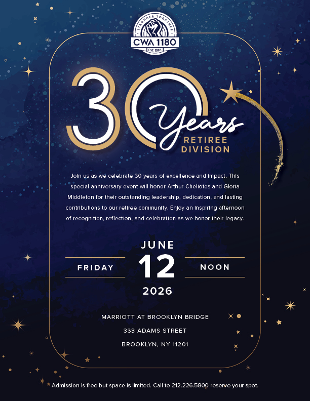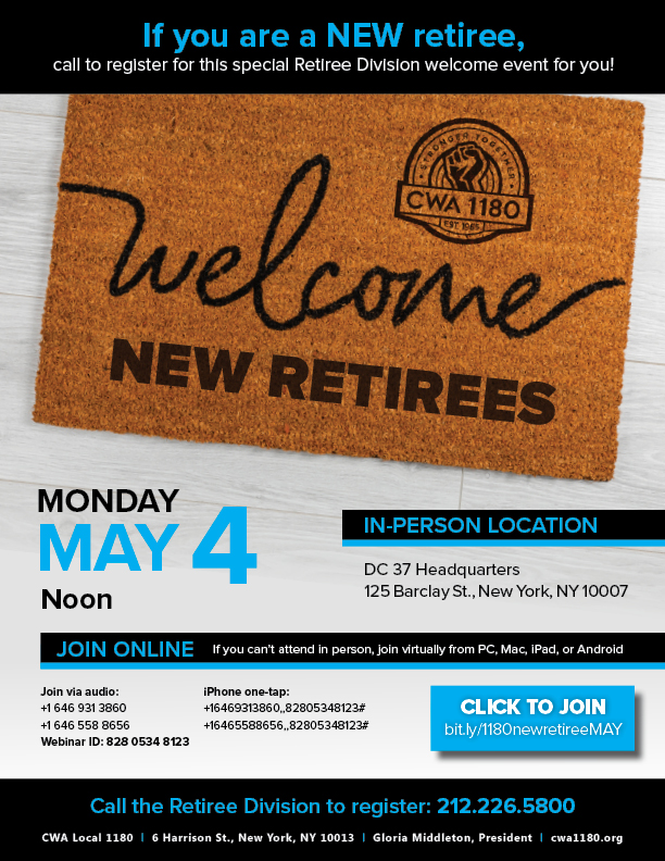 Call the Retiree Division to reserve your spot today: 212.226.5800
